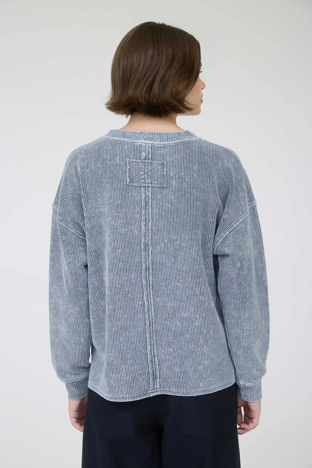Remember Me Washed Pocket Detail Long Sleeve Rib Knit Top in Denim