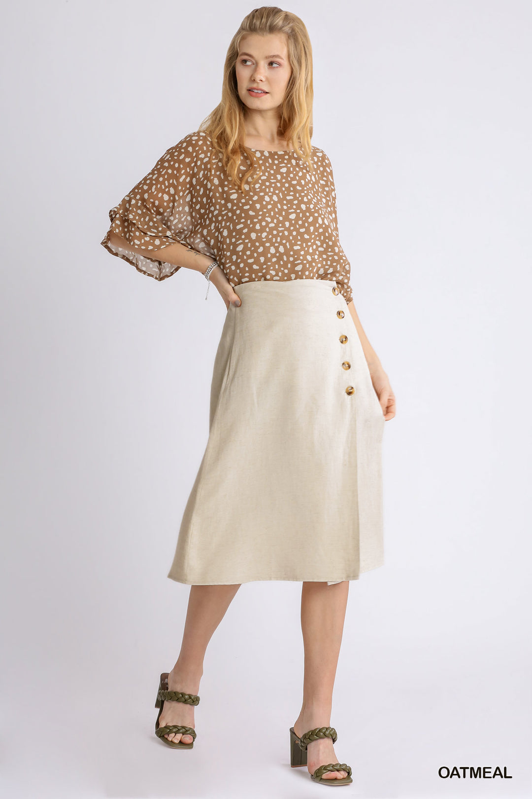 Show Me The Way Midi Wrap Skirt with Buttons In Oatmeal
