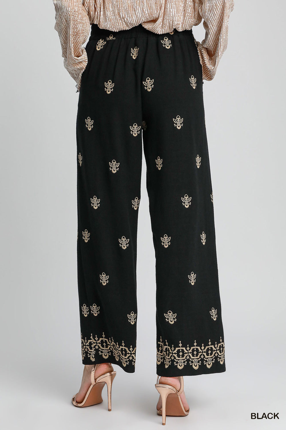 We are Golden Crinkle Wide Leg Pants with Pockets in Marlin