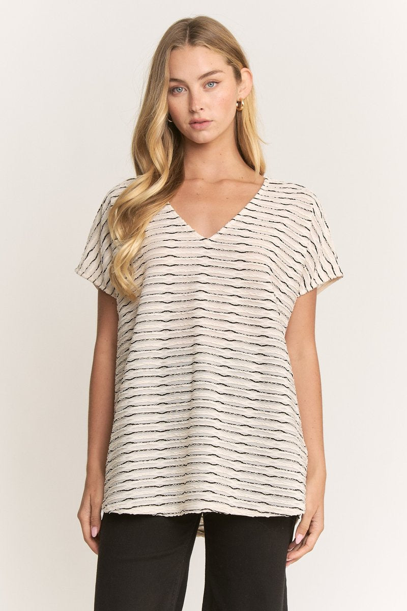 Be My Muse Short Sleeve V-Neck and Black and Cream