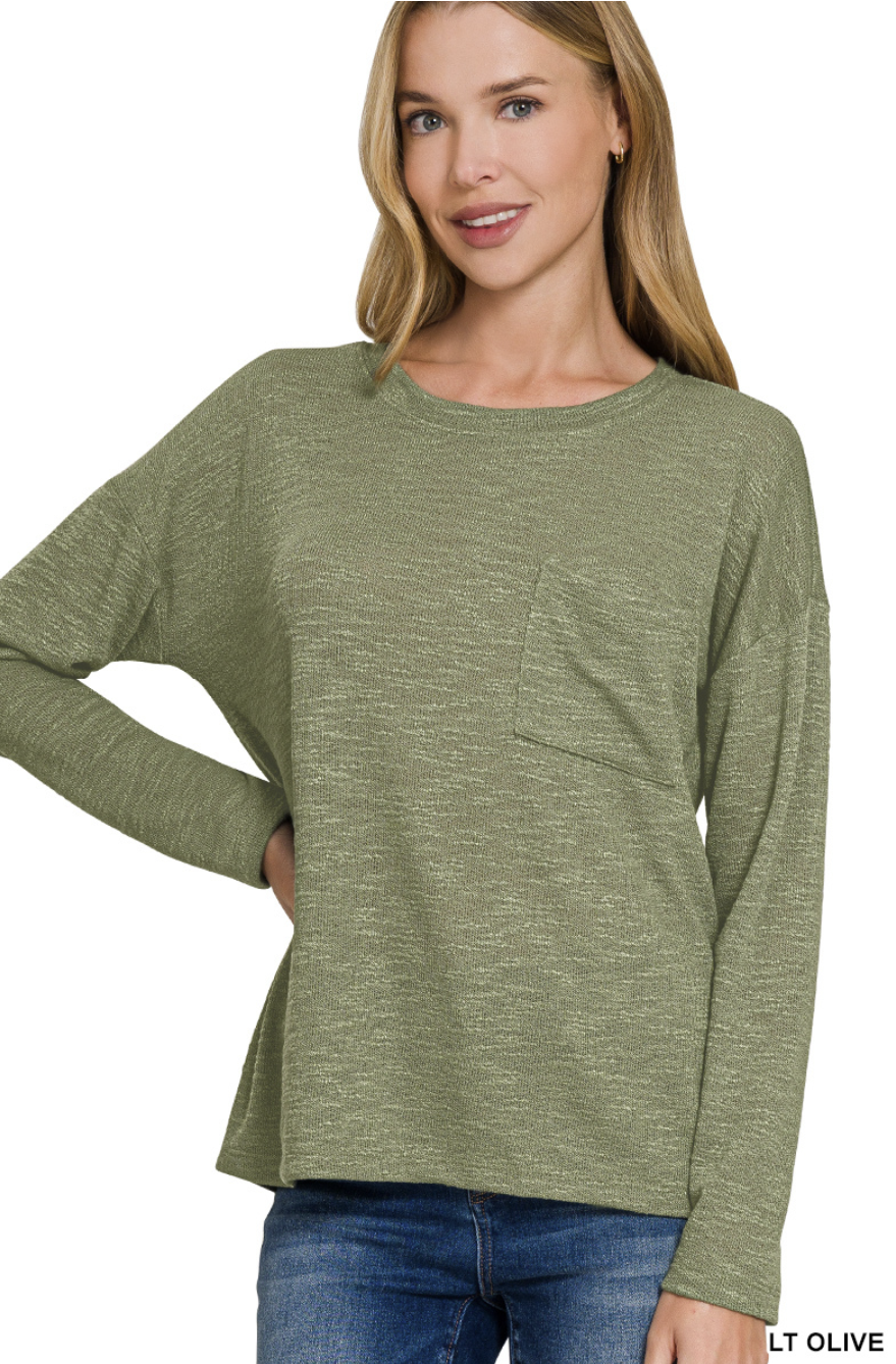 Going With You Light Weight Hacci Long Sleeve Shirt in Olive