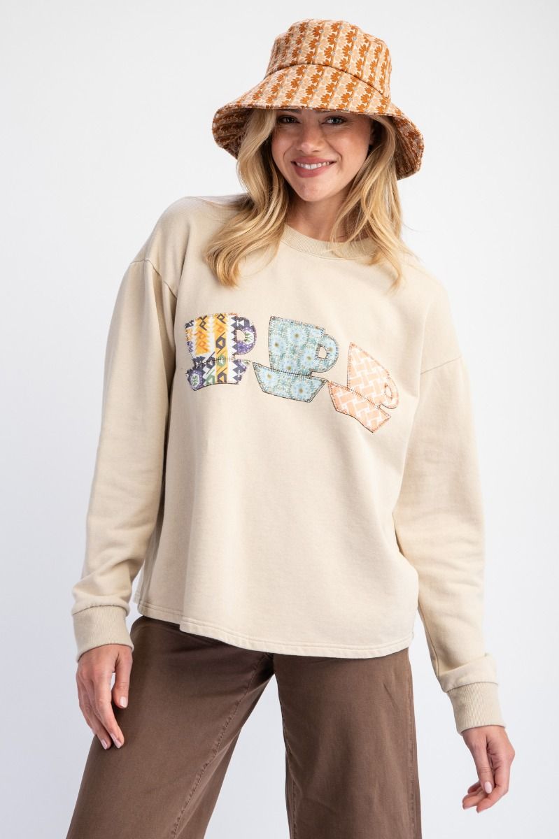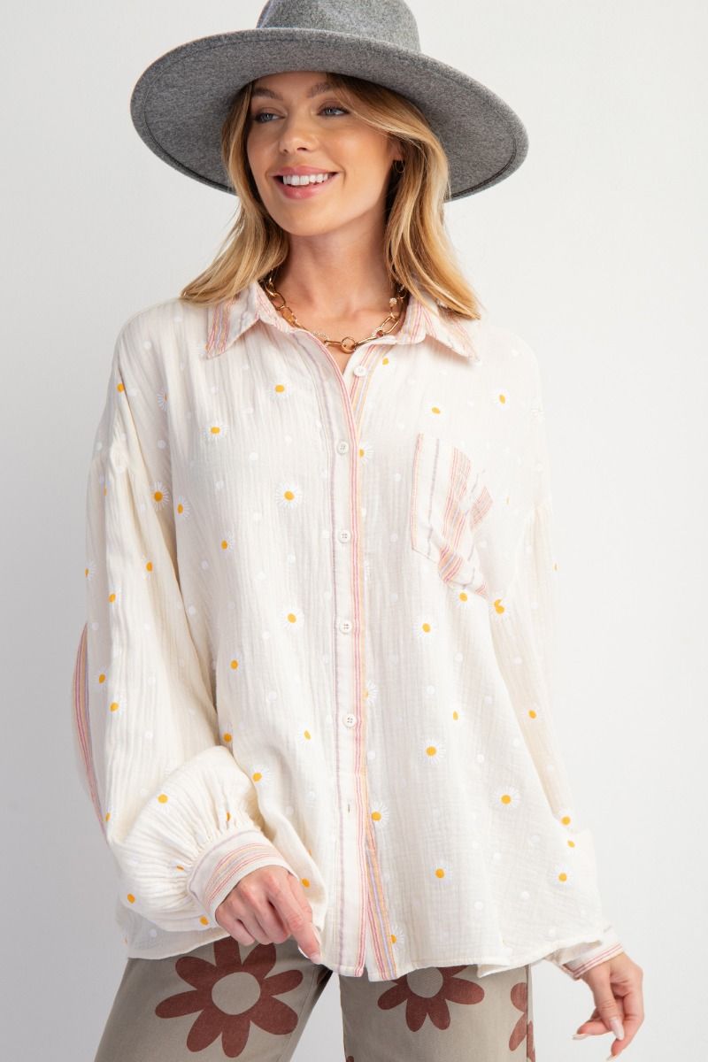 Look at You Floral Print Button Down Long Sleeve Top in Cream