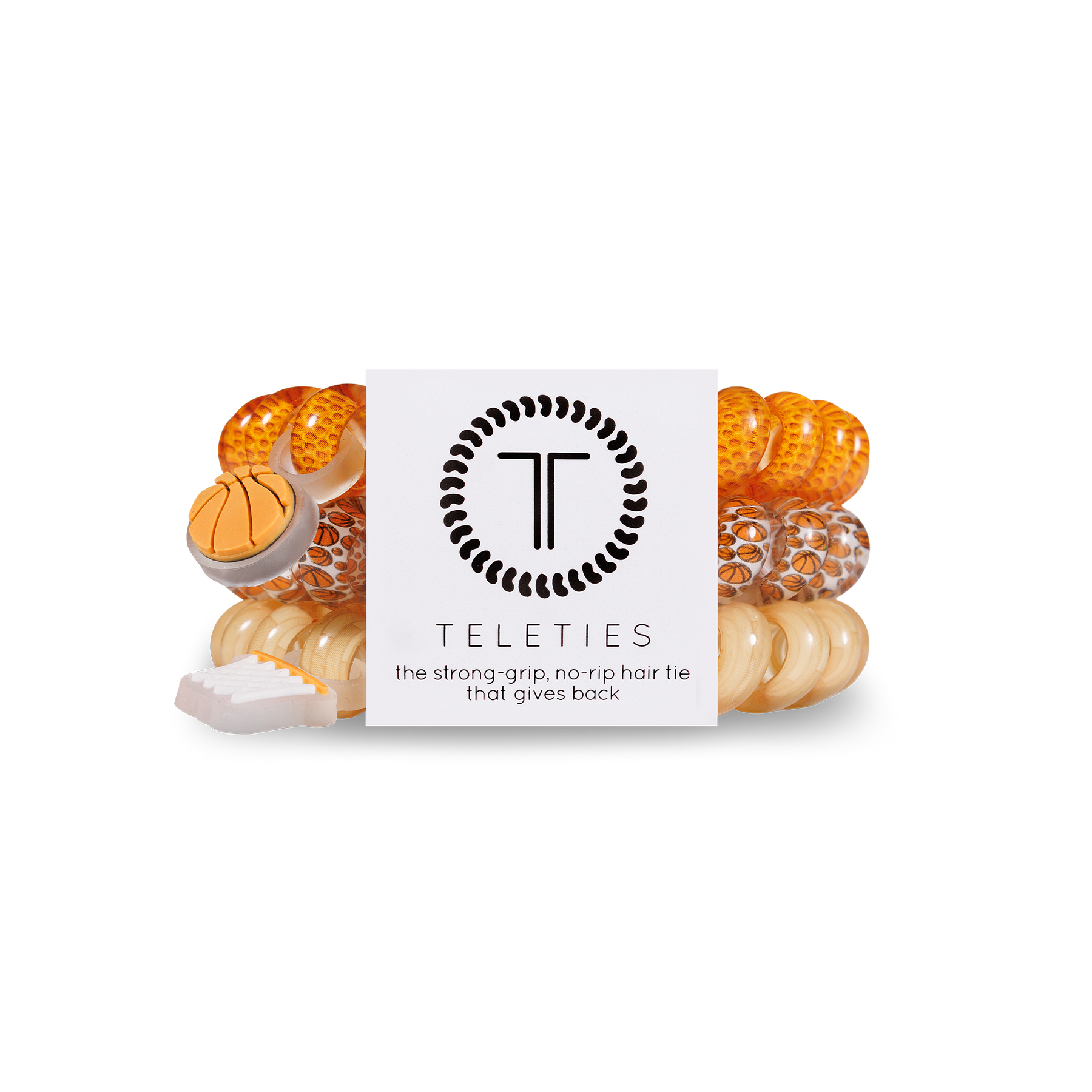 Hold your hair and enhance your style with TELETIES. The strong grip, no rip hair tie that doubles as a bracelet. Strong, pretty and stylish, TELETIES are designed to withstand everyday demands while taking your look to the next level. Sold in packs of three. The large size is 6.5cm wide x 1cm thick.